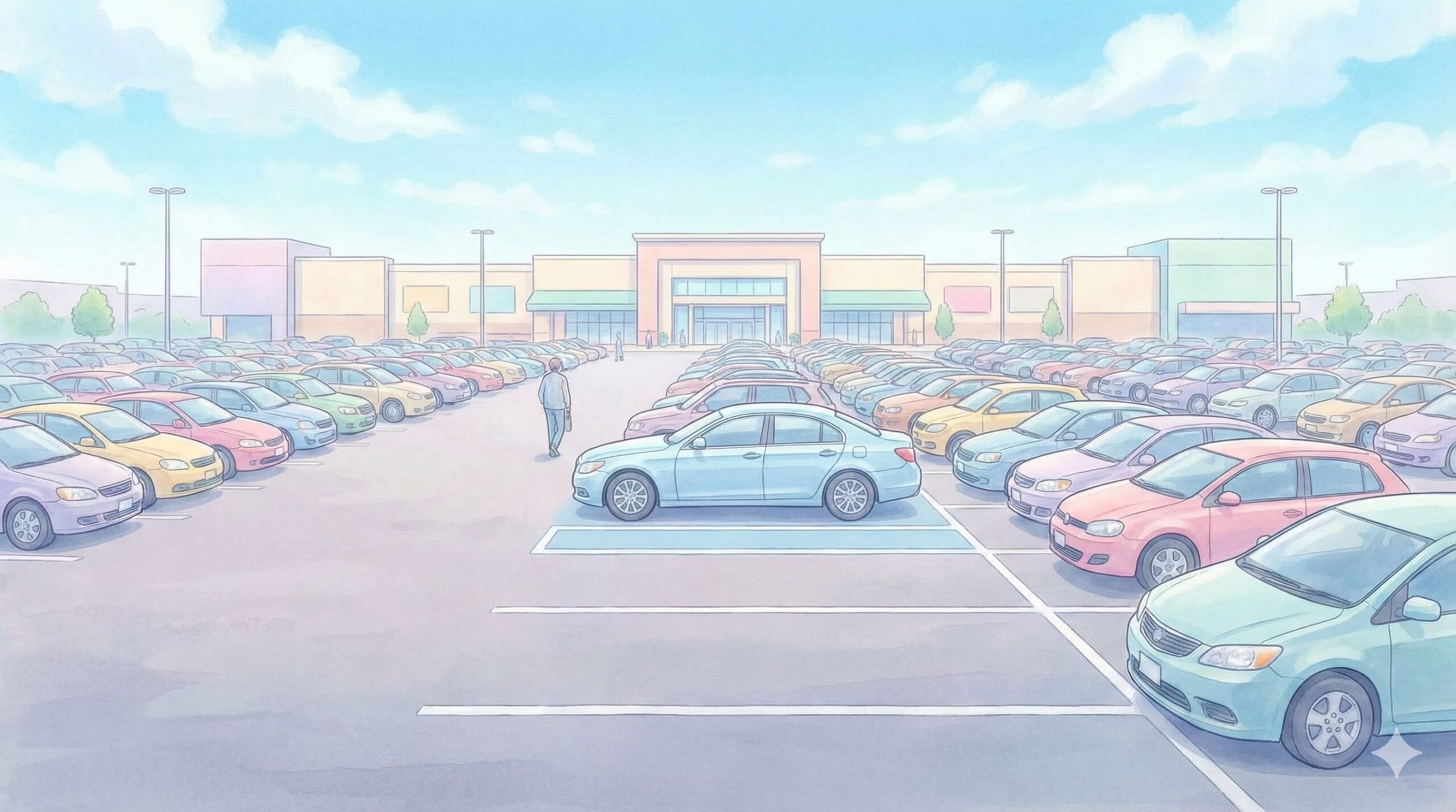 - ショッピングモールの駐車場に車を駐める