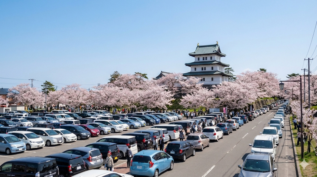松前さくらまつりは北海道屈指の人気イベントのため、特に以下の時間帯は満車になりやすいです。