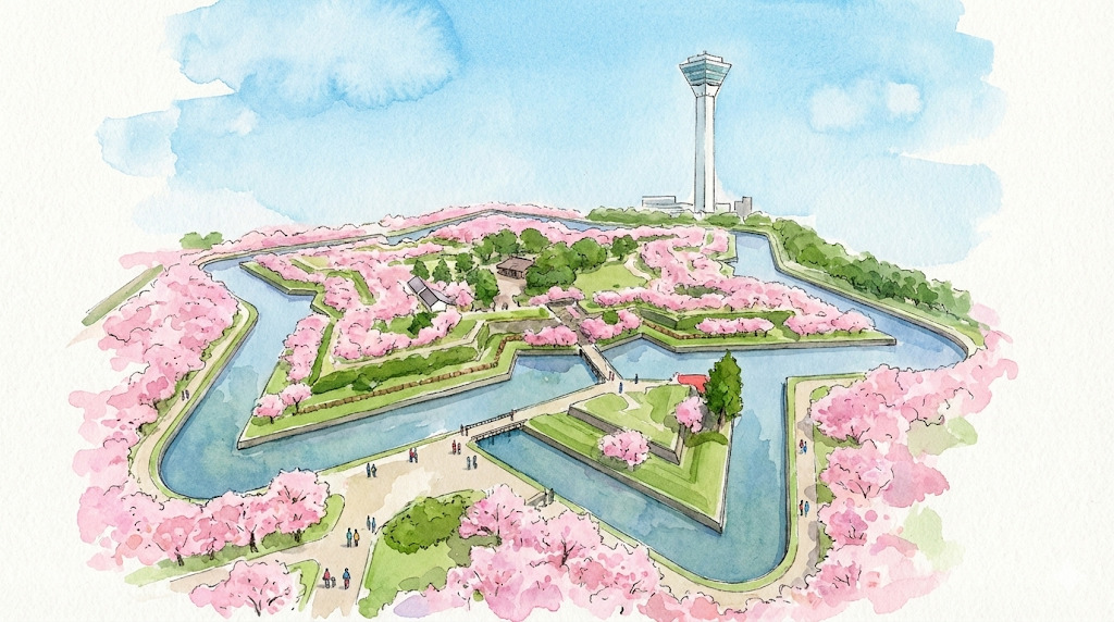 北海道函館市にある五稜郭公園は、星形の城郭と約1,600本の桜が織りなす絶景で知られる、北海道屈指の花見スポットです。