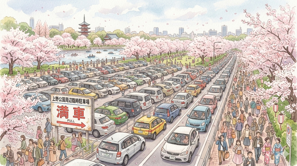- 上野公園の桜シーズンは周辺駐車場が非常に混雑