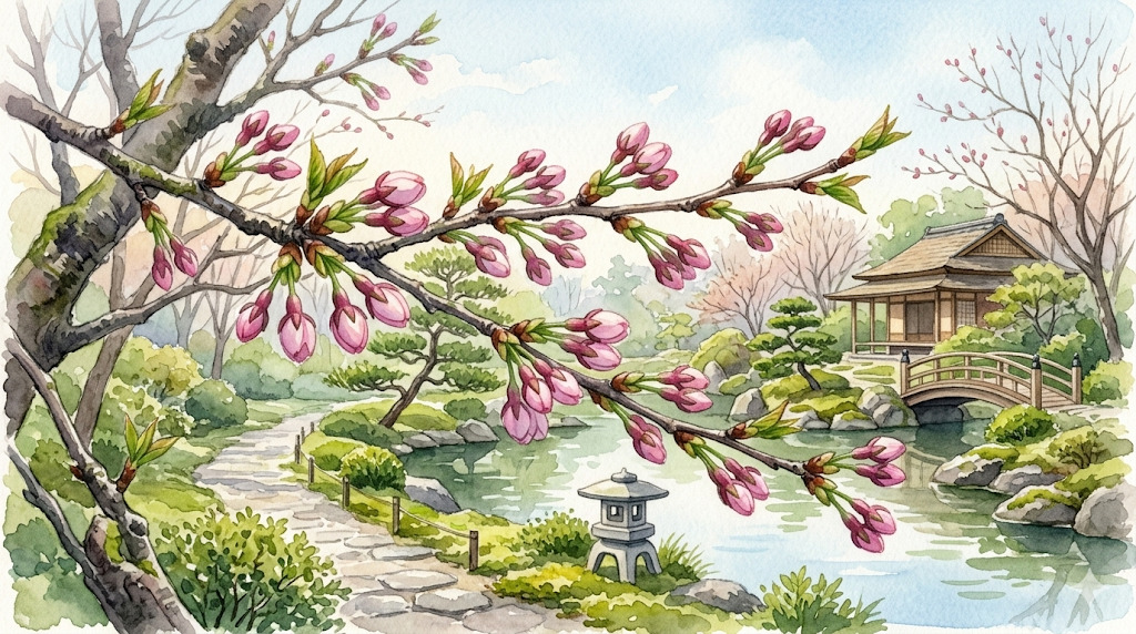今後気温が上がれば、3月中旬ごろから園内の桜が少しずつ咲き始める可能性があります。