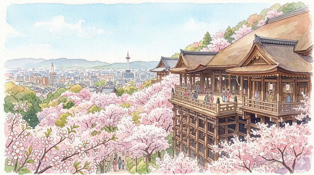 清水寺の境内には約1,000本のソメイヨシノやヤマザクラが植えられており、京都を代表する桜名所として知られています。