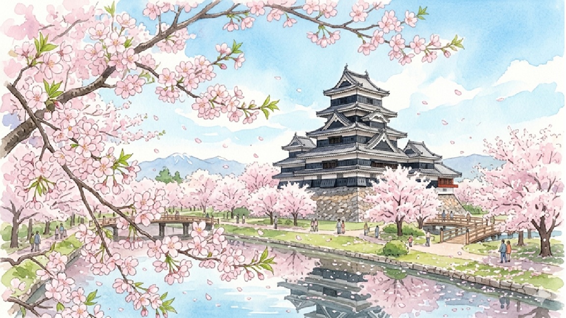松本城は国宝の天守と桜の景色を同時に楽しめる人気の花見スポットです。