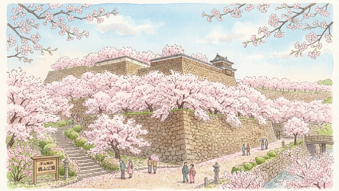岡山県津山市にある鶴山公園(津山城跡)は、中国地方を代表する桜の名所として知られています。