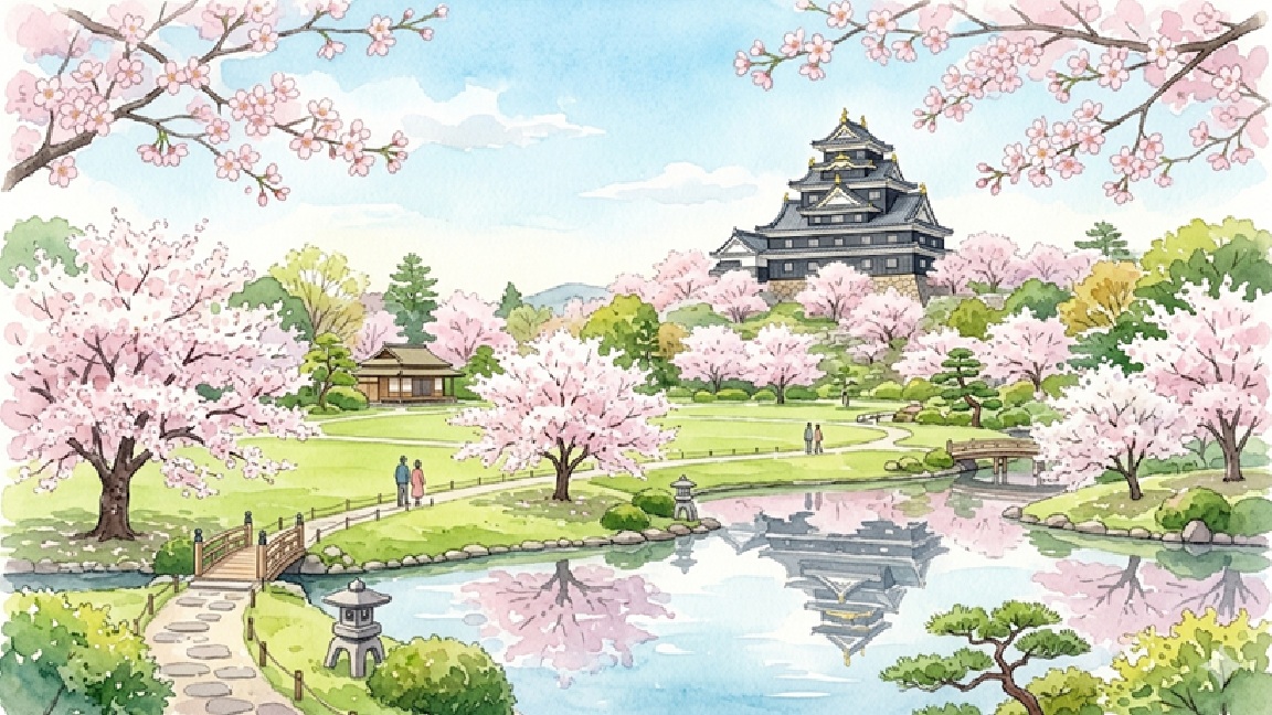 岡山後楽園は、日本三名園のひとつとして知られる庭園で、春には美しい桜と芝生の景観を楽しめる人気の花見スポットです。