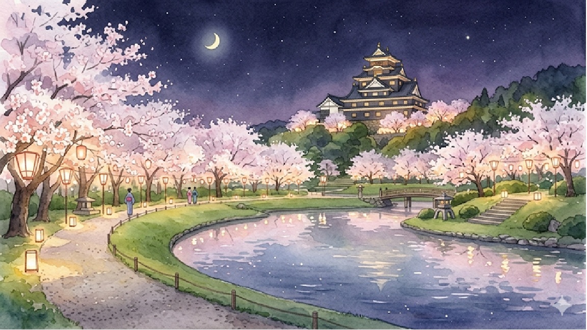 • 夜間ライトアップ:ぼんぼり・投光器による夜桜演出