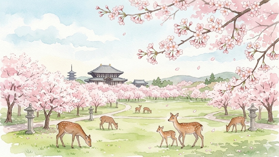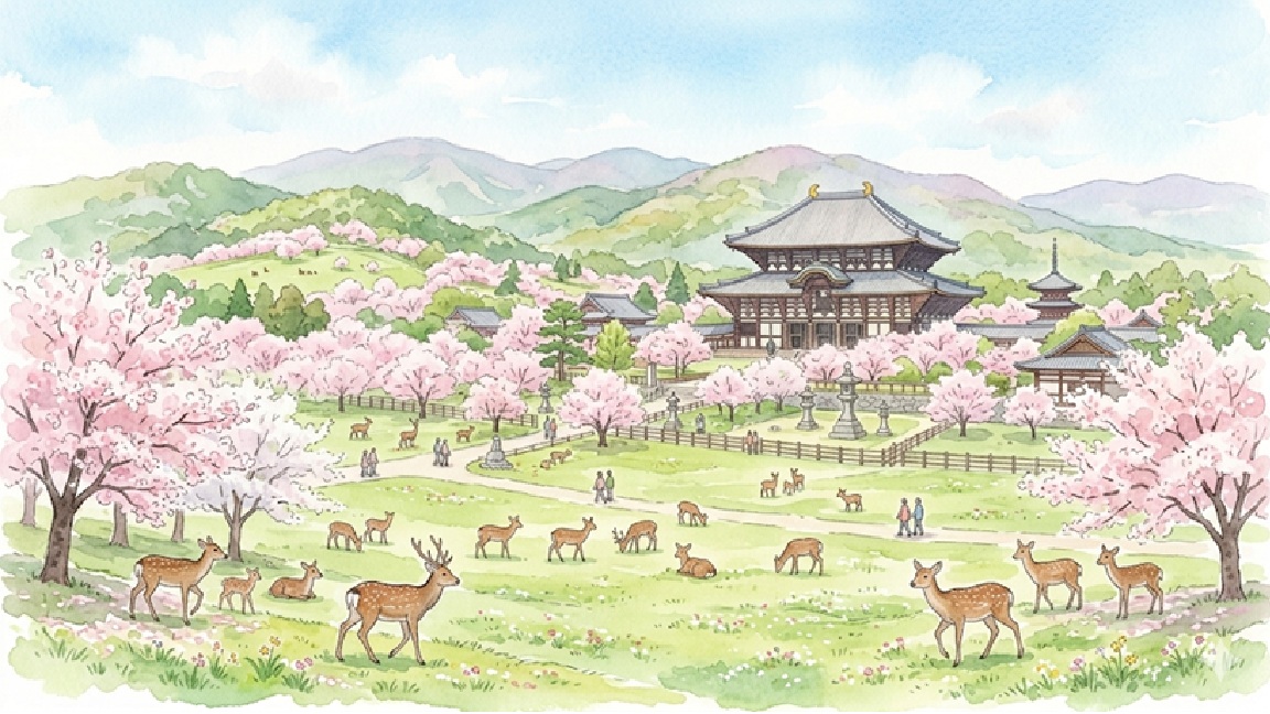 満開時には東大寺や春日大社周辺の桜が美しく、歴史的建築と桜の景観が見事な風景を作り出します。