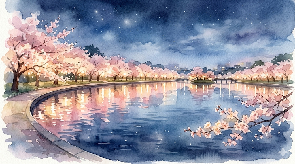 花見シーズンには屋台やBBQを楽しめるエリアもあり、昼も夜も春の雰囲気を満喫できます。