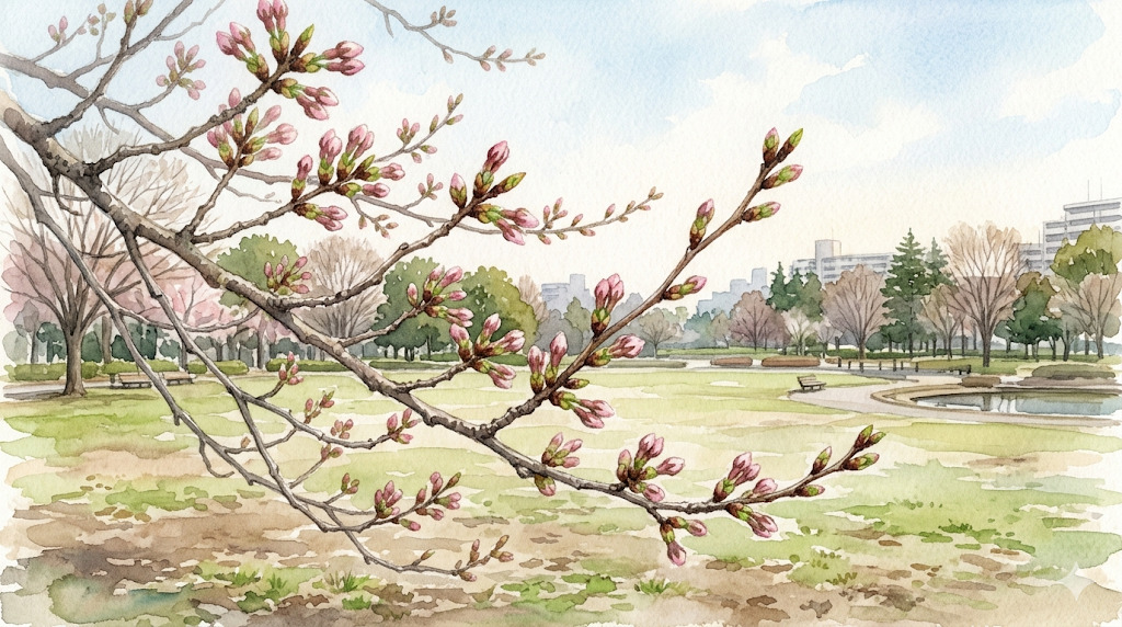 2026年3月19日現在、光が丘公園の桜はつぼみ(未開花)です。