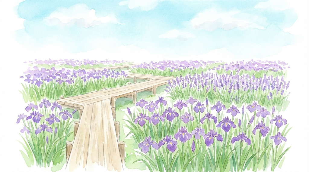 見頃は例年6月上旬~下旬が中心です。会場周辺では、あやめ園とラベンダー堤・ラベンダー苑を徒歩で回れるのが魅力。