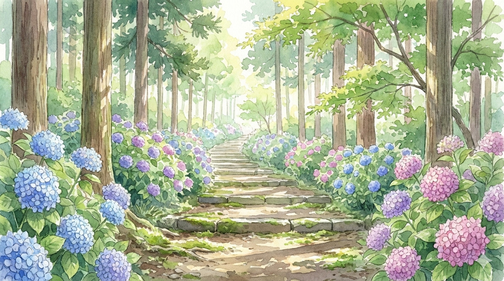 - 6月中旬〜下旬:西洋あじさい・ガクアジサイが最盛期