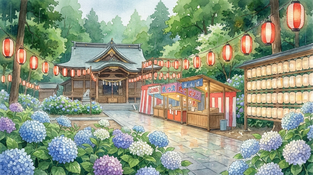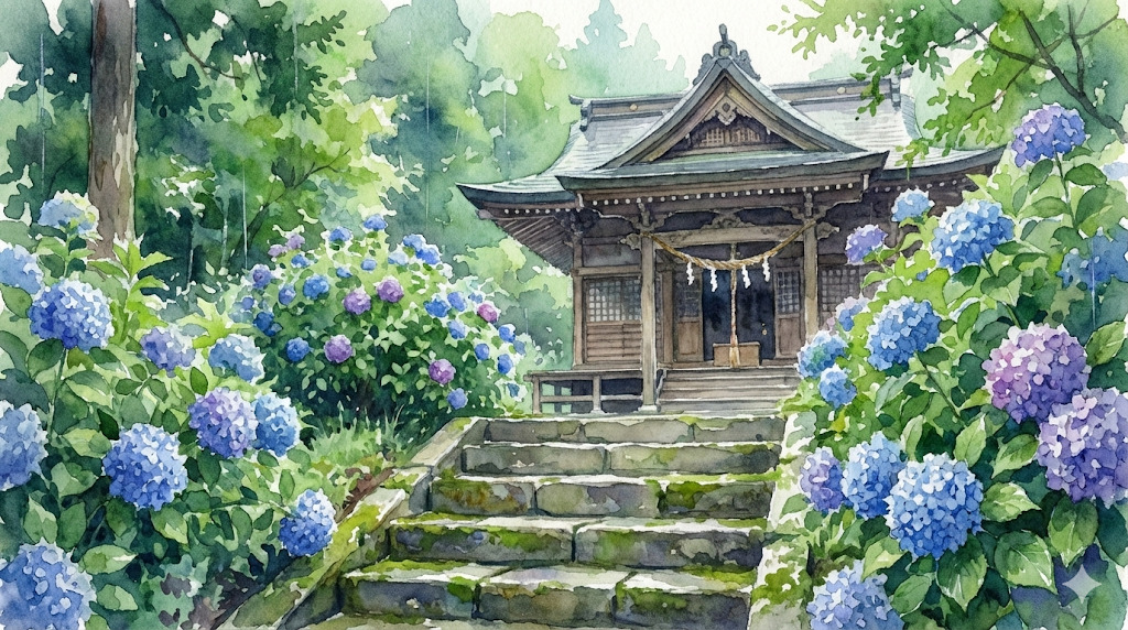 神社の厳かな雰囲気と可憐なあじさいのコントラストは、他では味わえない特別な空間を演出してくれます。