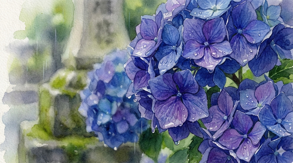 石段沿いや本堂周辺など、境内各所に咲き誇る多彩なあじさいと合わせて、ゆったりとした時間を過ごせます。