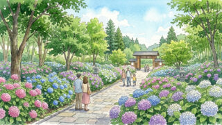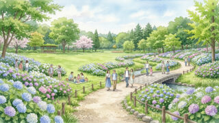 2026年最新|昭和記念公園のあじさいは現在つぼみ(開花前)。見頃は6月中旬〜7月中旬予想。開花状況や混雑・アクセスもまとめて解説。広い園内でゆったり楽しめる人気スポットです。